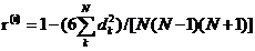 其中是兩個(gè)樣本排列的序差,為樣本容量。顯然是一個(gè)維的對(duì)稱矩陣,并且中各列間不存在統(tǒng)計(jì)相關(guān)時(shí)是一個(gè)單位陣。