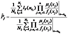 為了采用數(shù)字模擬的方法求解上述失效概率和可靠性試驗(yàn)靈敏度定義式,可引入維聯(lián)合概率密度函數(shù),從而將式和式轉(zhuǎn)換成式和式所示的數(shù)學(xué)期望的形式[6]。